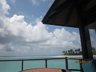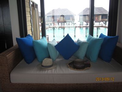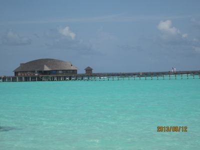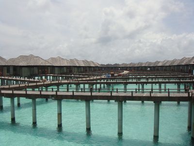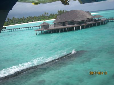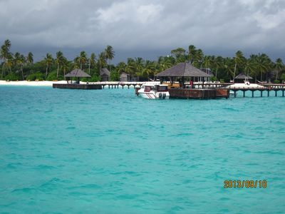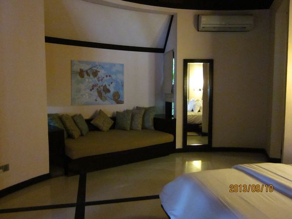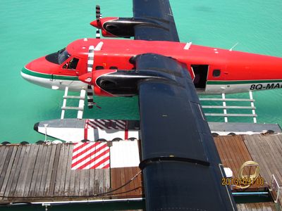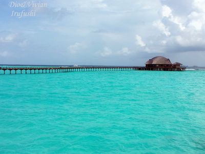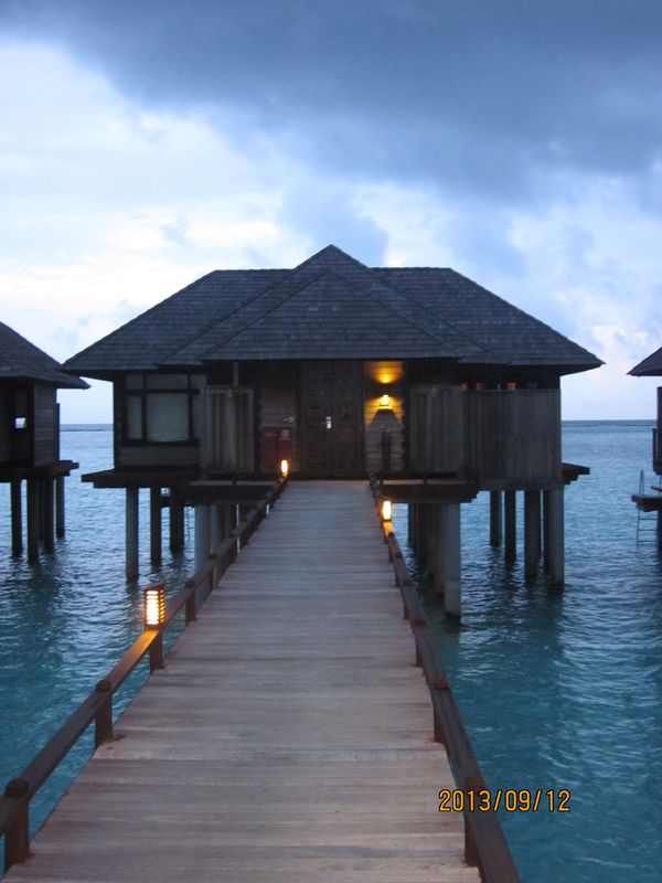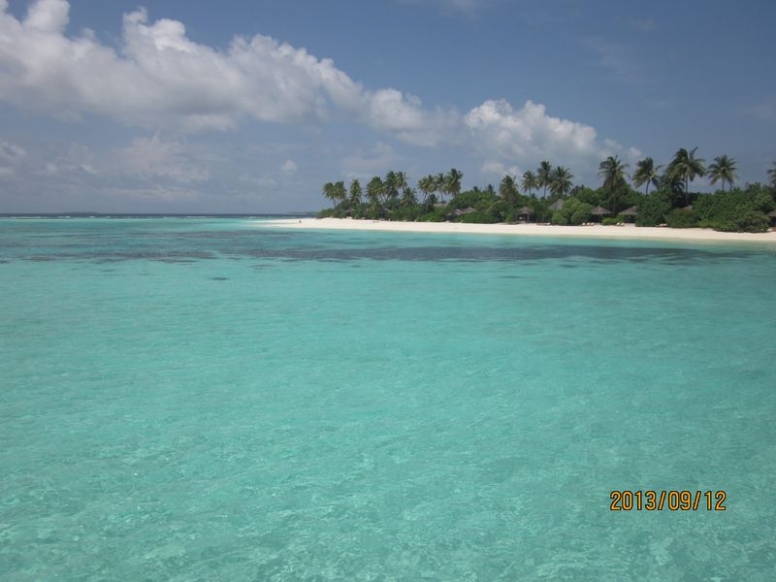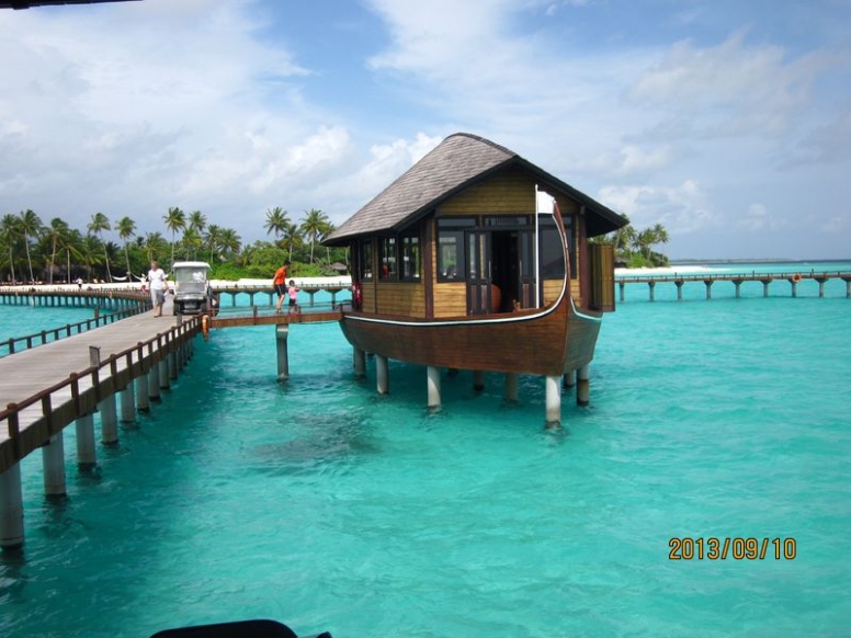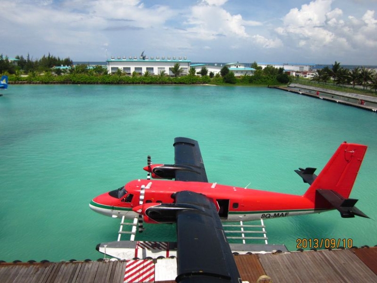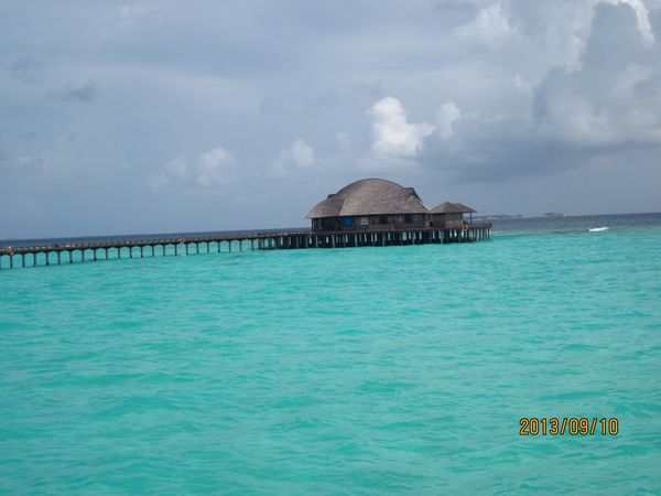 很久以前就期待着马尔代夫,但是对于国人,好像这里是个蜜月的代名词,其他时间点都缺少了浪漫的感觉,而且用蜜月做契机,可以不用过多顾虑荷包的承受能力,哈哈。选择途牛,也是再三比对的结果,其实一开始是看上了携程的伊露岛五天七晚,但是由于时间一拖再拖,所以错过了合适的价格,后来选择的途牛价格相同却是四天六晚。在网站预订之后,就有专人客服给我打电话,回答我一些问题等等,感觉客服还是挺详细的,这一点感觉很放心。因为是提前2个月预订,所以交完钱就没有再关注。直到出行前半个月,途牛的客服再次联系我,告诉我具体的出行时间安排,还发了十多个出游小贴士,建议我仔细阅读。因为是自由行,什么都要自己操办,再加上语言实在不过关,去之前还真是挺担心的,于是一股脑把所有的出游贴士都打印了出来,什么出入境、check in 租用潜水设备、预约活动、日常对话等等等等。当然客服也提示我们提前打印酒店的预订单,以便入境后使用。在全程无导游的情况下,装着慢慢的幸福与期待,我们出发啦!我们坐的是海航的直飞航班,没有选最便宜的当地航空公司,因为听说都是二手飞机,总是修来修去的。经过长达8小时的憋屈(飞机太小,还坐的满满的),终于到了马累。估计我们是当天最晚的航班了吧,以至于我们出了机场找酒店的接待,人家都撤摊了。各个岛的接待人员都在机场外等候,乘客只要找到自己的岛的服务台出示酒店预订单就可以了。但是我们的服务台却人去楼空,幸好旁边的小黑机灵,赶紧叫回了我们酒店的地接一个当地姑娘。姑娘带我们上了小面包,车上已经坐满了人,就差我俩了。车子开出机场,兜兜转转前往水飞的地方,我们这些人却只是被这美丽的景色吸引着,殊不知,机场到的景色是最差的,呵呵,好像还总是阴天。伊露算是马尔代夫挺大的一个岛了,所以整车人都是去那的。到了等候大厅,按照惯例上了饮料喝免费的食品,因为是免费的,大家都不客气的吃起来,一边吃一边填写酒店的活动预订单。因为我们实在是看不懂,所以导致最后什么也没预定....