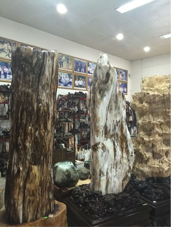 【勐巴娜西珍奇园】:位于芒市城东南,是国家AAAA级景区,现已建成具有古朴、自然、珍奇特色的高品位景点,勐巴娜西珍奇园汇集了全国少见的大量古树名木,是全国罕见的生态园林。树化玉是玉化的硅化木。它属于硅化木,又因其晶莹剔透的外表而区别于普通硅化木。在漫长的地史过程中,大片的原始森林被博大的自然力量埋葬于地下。在高压、低温并且无氧环境下浸泡于二氧化硅的环境中,树木中的碳元素逐渐被二氧化硅替代,并部分保留了树木的某些原始特征,并纳入周围岩层的某些矿物元素,形成缤纷的色彩物质,这就是硅化木,也叫做木化石。而后漫长的地质时期,在温压的不断变化中,硅化木木发生了差异的变质作用,重新结晶,主要成分转换为蛋白石玉髓,这就是树化玉,也叫木化玉。